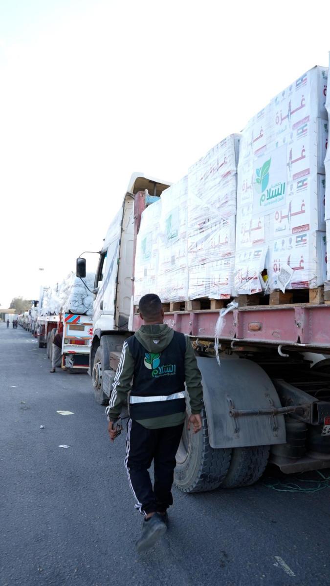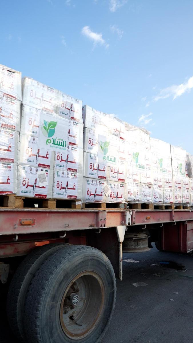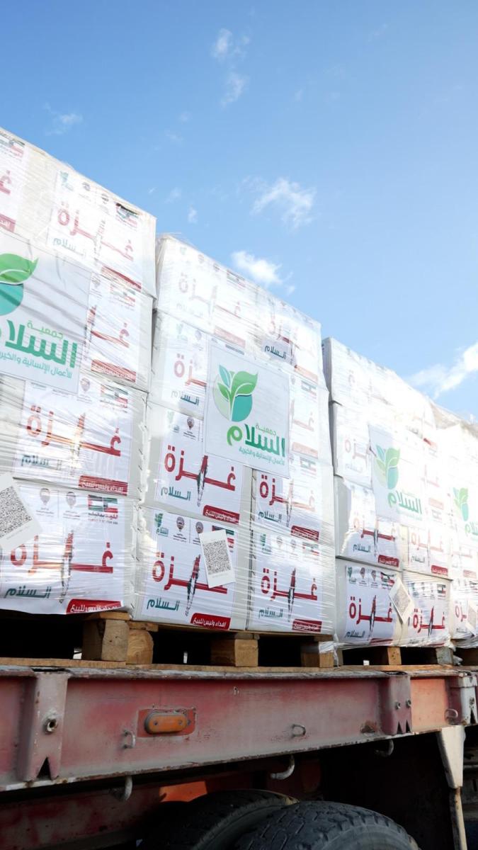 جمعية السلام "للأعمال الإنسانية" تُدخل 22 طنًّا من المواد الغذائية و48 طنًّا من التمور و2500 بطانية وملابس إلى غزة