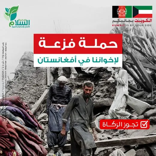 فزعة إنسانية لإخواننا المتضررين من زلزال أفغانستان والذي خلف ورائه 2200 قتيل و4000 جريح ودمر 8000 منزل.