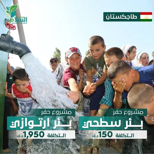 بئر ارتوازي عمق البئر: 40-54 متر عدد المستفيدين: حي بالكامل مع خزان ماء 1500 لتر و 3 حنفيات ومظلة بتكلفة: 1950 د.ك